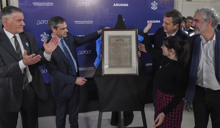 En un acto que contó con la presencia de Massa; el administrador federal, Carlos Castagneto; y el director general de Aduanas, Guillermo Michel, la Aduana recuperó un impreso original de 1816, del acta de Declaración de Independencia.