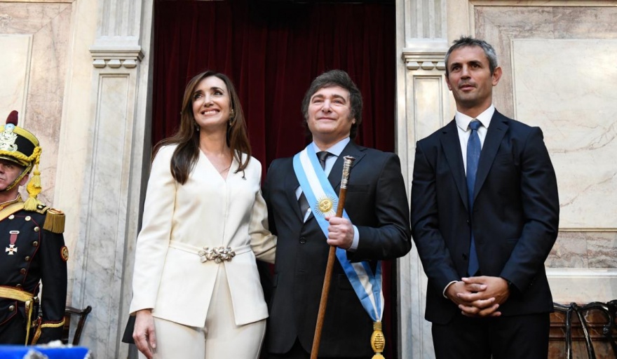 La asunción del presidente Javier Milei fue de las ceremonias más breves desde el retorno a la democracia hace 40 años y la primera en la que un jefe del Estado no pronuncia un discurso ante los legisladores, sino que eligió hablar a sus seguidores desde las escalinatas del Congreso donde ratificó que el único camino posible para salir de la crisis económica "es el ajuste".