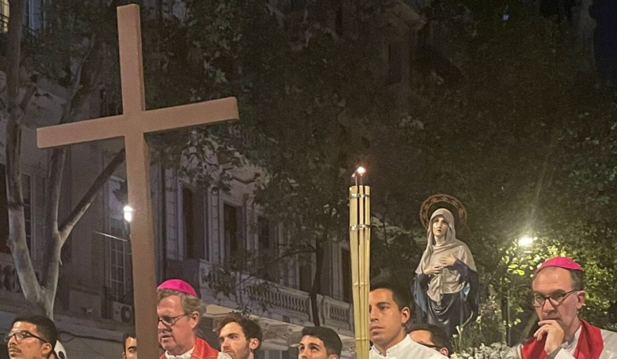 En un mensaje que compartió frente a la Catedral, García Cuerva habló de “la cruz por perder un ser querido, la cruz porque ves que la jubilación no te alcanza y tenés que comprar un remedio, la cruz de estar muy solo porque te sentís casi abandonada hasta por tus propios seres queridos. Las cruces de la injusticia, cruces personales que cada uno carga y sabemos cuánto duelen, pero también cruces colectivas, cruces de todos”.