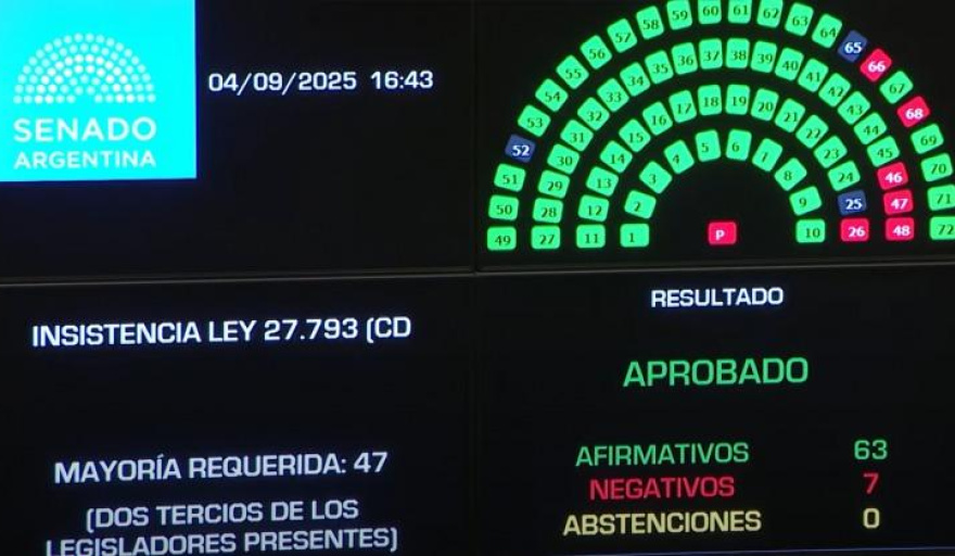 La Cámara alta aprobó por 63 votos contra siete que fueron aportados por seis de la Libertad Avanza y una senadora del PRO, mientras que se ausentaron el peronista José Antonio Rodas y la libertaria Vilma Bedia.