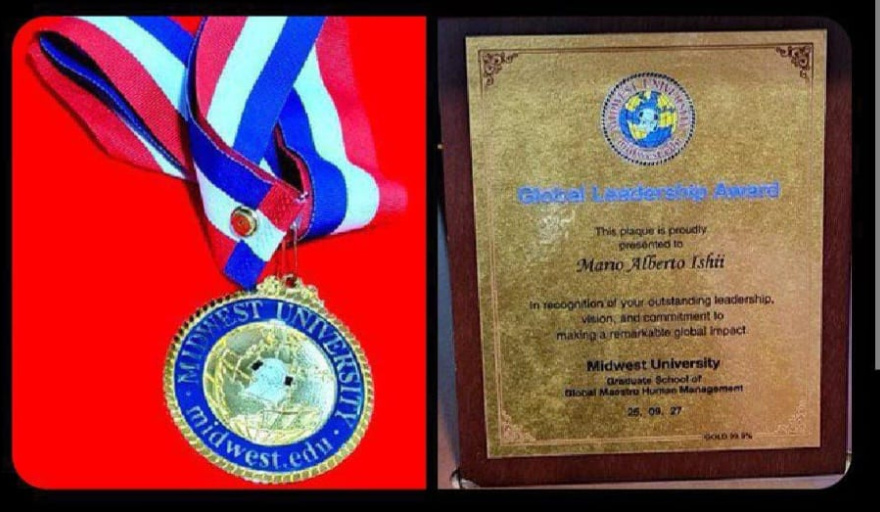 Durante su visita, el Intendente Ishii recibió la Medalla y Placa al Liderazgo Global del Premio de Honor, otorgada por la Alta Casa de Estudios Midwest University, de Estados Unidos. El reconocimiento fue entregado por su fundador y presidente, Dr. James Song, en un acto que reunió a académicos y representantes internacionales.