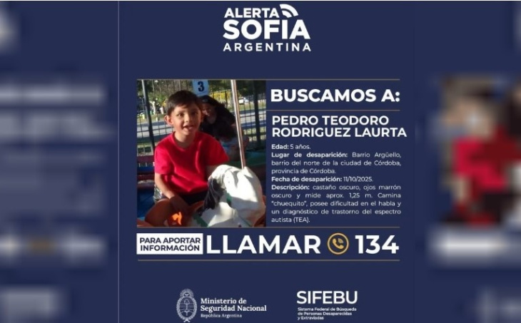 El Ministerio de Seguridad de la Nación difundió un comunicado con datos del niño, mientras se desplegaba un gran un operativo de búsqueda en todo el país y en los pasos fronterizos.