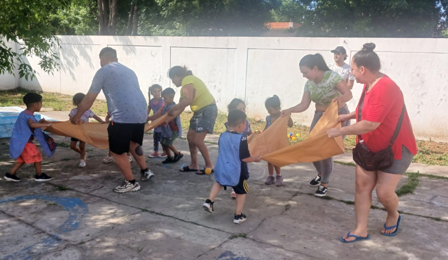Se realizaron actividades y juegos en conjunto entre los niños y sus padres, fomentando el movimiento, la cooperación y la diversión.