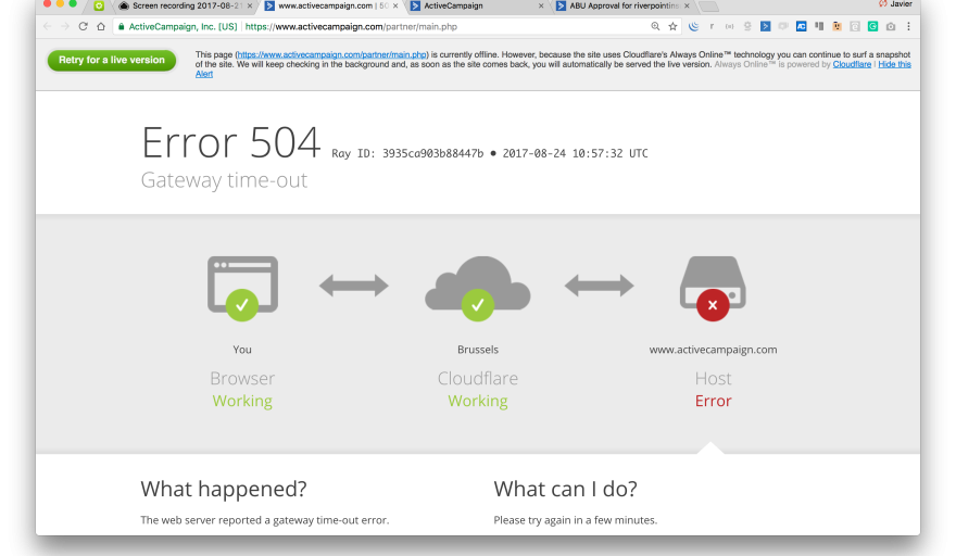 Al intentar ingresar a las páginas, los navegadores devuelven mensajes de "500 Internal Server Error" o "502 Bad Gateway", indicando que los servidores no pueden responder a las solicitudes. Cloudflare confirmó que está "investigando el incidente" y trabaja en una solución para restablecer el tráfico.