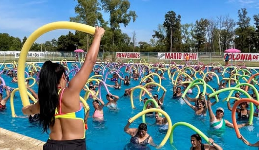 A cargo de la profesora Damaris Pino las clases de Aquagym se dictan los Martes a las 10:00 hs y los Jueves a las 17 hs en el predio Salvatori donde se desarrolla la Colonia Municipal de verano