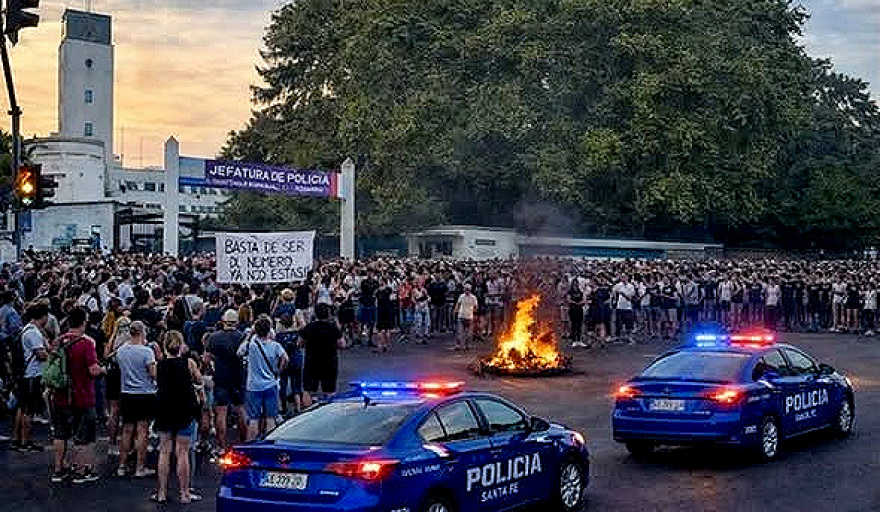 Tras una madrugada del martes a pura tensión, el Gobierno de Santa Fe anunció el pase a disponibilidad de veinte policías. Pero en lugar de disuadir la protesta, durante todo el martes llegaron más y más agentes a participar de la manifestación en Rosario.