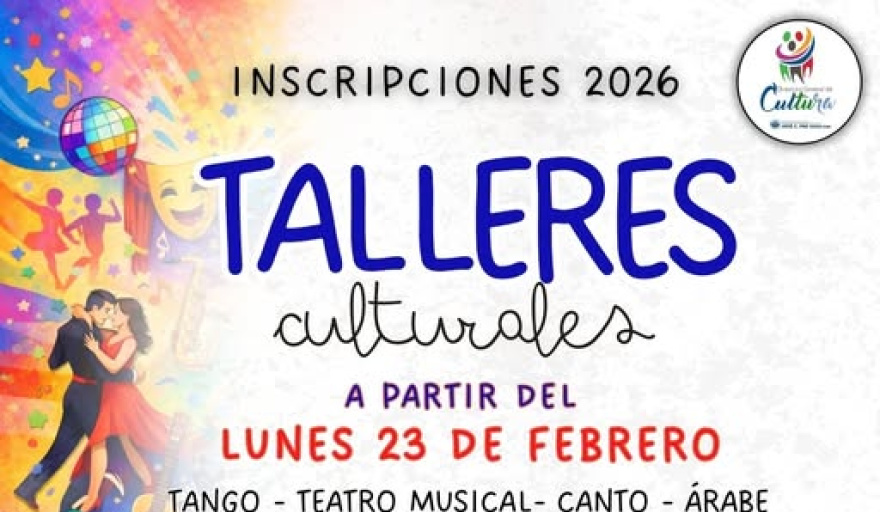 La Dirección de Cultura brinda talleres de tango, teatro , canto, árabe, guitarra, danza jazz, maquillaje, globología, folklore, tangoteraia entre otras tantas disiplinas culturales.