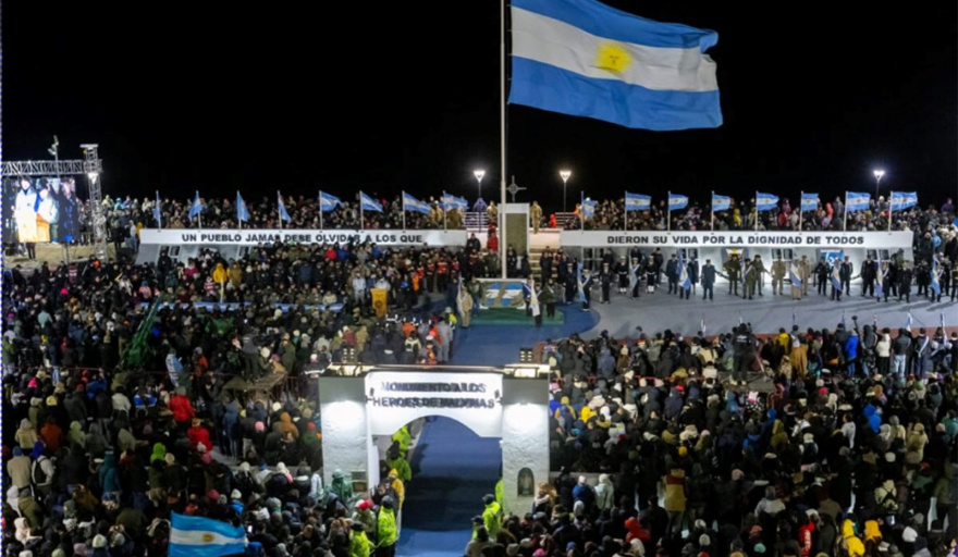 En la Capital Nacional de la Vigilia de la Gesta de Malvinas, se encendieron 44 antorchas, una por cada año transcurrido desde la guerra con el Reino Unido. Luego el Batallón de Infantería de Marina Nº 5 presentó un simulacro de la «Operación Rosario», como se llamó al desembarco en 1982.